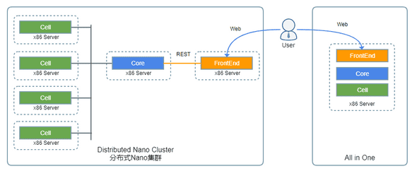 - 开箱即用:Nano自带完整的Web管理门户以及云主机监控页面,无需安装额外组件。整个系统以最小化配置为目标,从网络发现、组网到设备选择,尽量使用智能化自动配置,将需要人工配置和选择的可能降到最小。