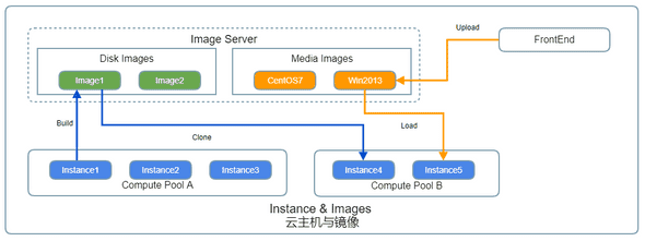FrontEnd模块是基于Core模块API接口的Web管理门户,它提供了资源池、云主机和镜像等资源的管理调度,也实现了基本的用户管理、安全校验、日志审计等功能,用户可以在FrontEnd上实现对整个平台集群的管理,也可以根据自己业务需求实现一套完全不同的Web应用。