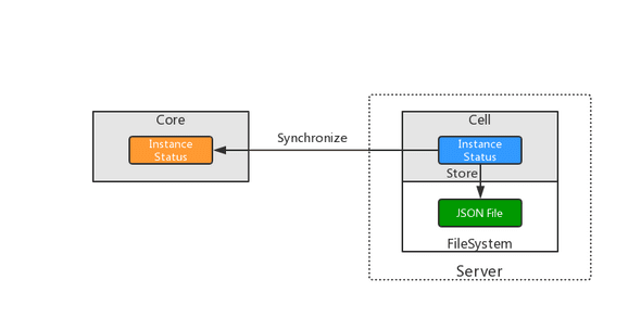 当Cell重新启动时,首先从本地配置文件读取所有实例信息,然后依次与实际运行实例进行比对校验,恢复或者修正数据。校验完成后,通过配置文件生成所有本地实例的状态信息保存到内存,在使用消息将本节点承载所有实例状态同步到Core节点,完成初始化启动,进入持续检测阶段,确保集群中的实例状态真实有效。