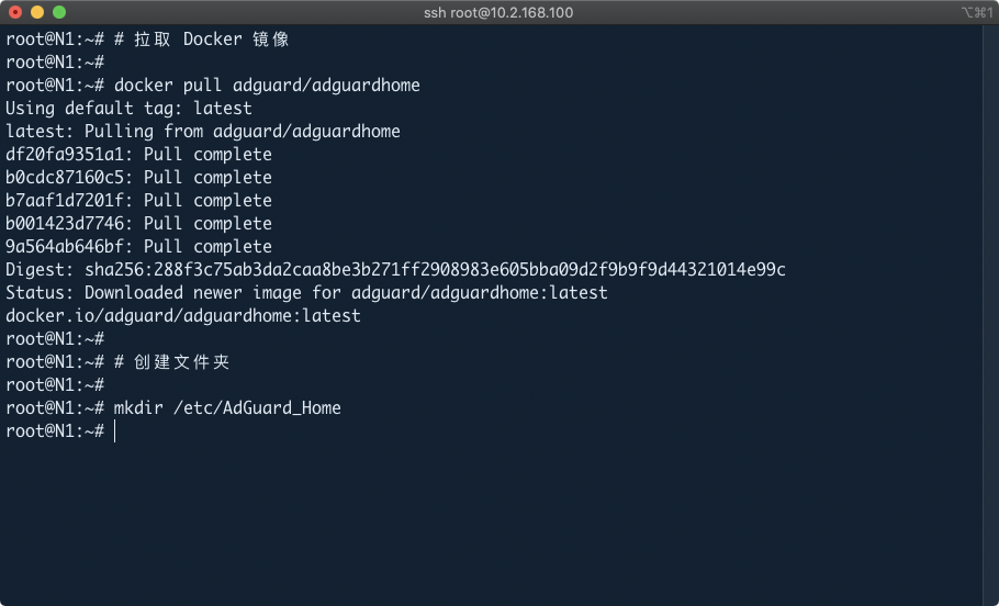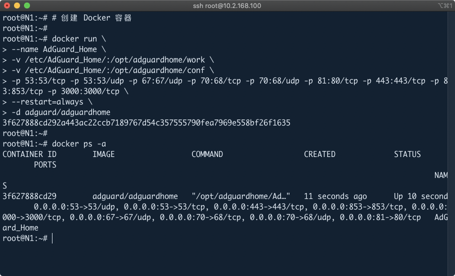 除了直接安装到系统,我们还可以通过 Docker 来安装 AdGuard Home。安装 Docker、添加 Docker 镜像源的教程请自行搜寻。