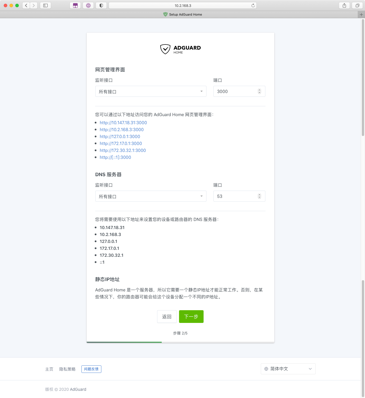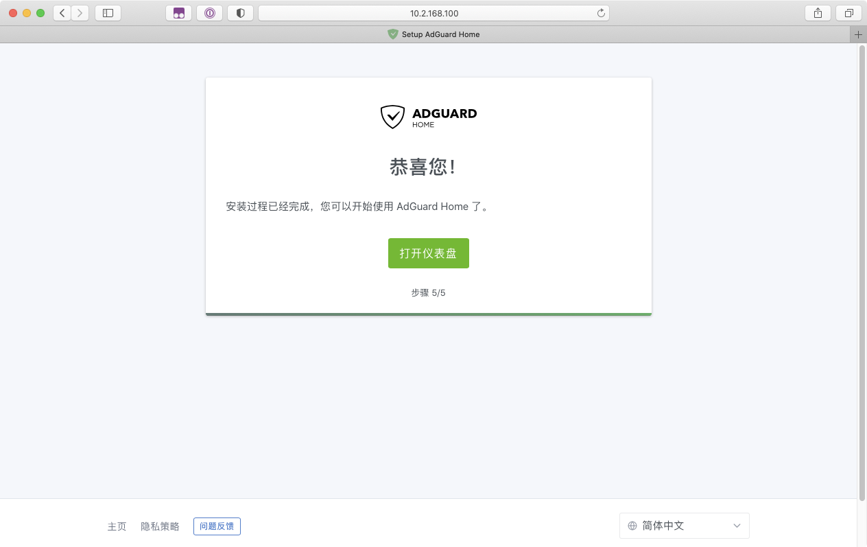- AdGuard Home 后台地址:http://10.2.168.100:3000