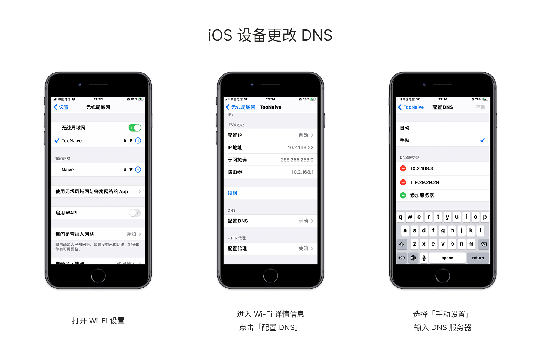 - 在 Wi-Fi 详情信息页面找到「配置 DNS」