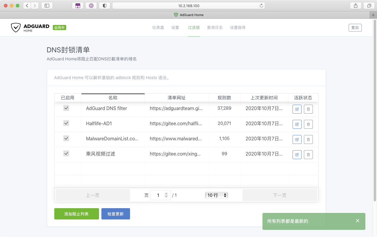 为了更好地发挥 AdGuard Home 去广告的功能,仅依靠默认的过滤规则是不够的,但也不宜过多,过多的过滤规则会影响解析的速度,各位可以根据需要添加过滤规则。