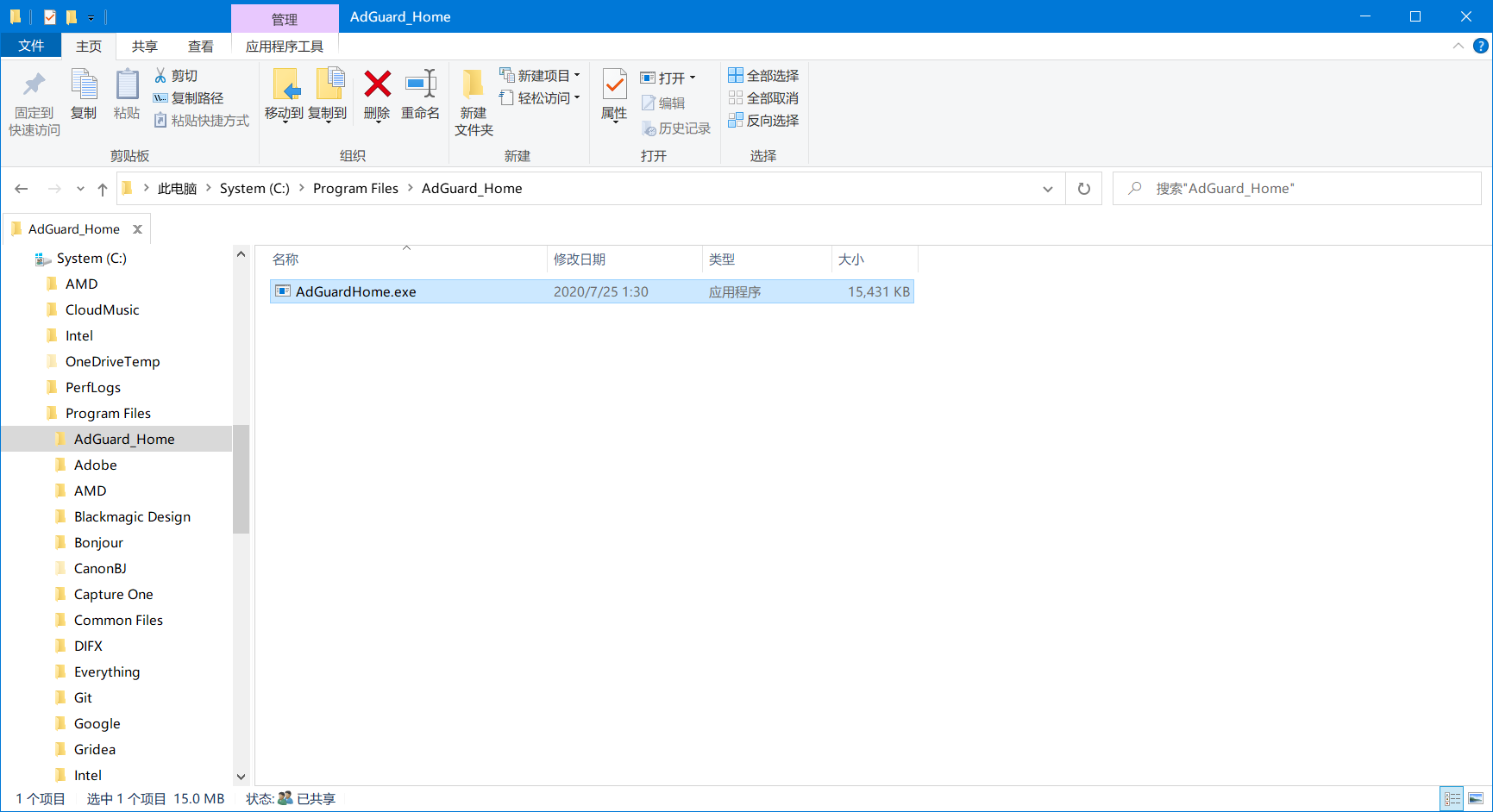 将AdGuardHome.exe移动到 C:\Program Files\AdGuard_Home文件夹中