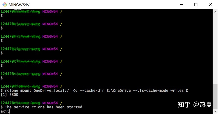 此时请使用 git bash 的终端执行以下命令,因为我使用cmd 和 powershell 都出现关闭终端后挂载程序退出、本地挂载的OneDrive退出的现象。 如果你的windows没有安装git , 请自行安装。若你使用 cmd 的话 ,cmd 是不能退出的,要保持 cmd 不退出本地硬盘才一直挂载着。