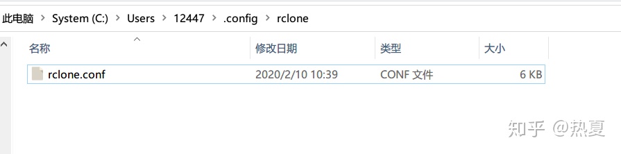 在 C:\Users\你的用户名\.config\rclone文件夹下就可以看见配置文件 rclone.conf 啦。