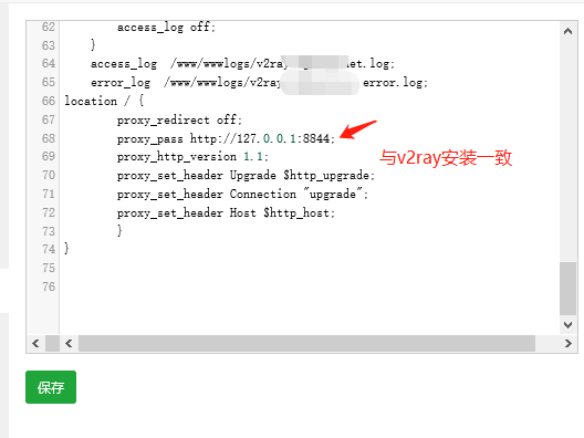 proxy_pass http://127.0.0.1:与安装v2ray设置的端口一致;
