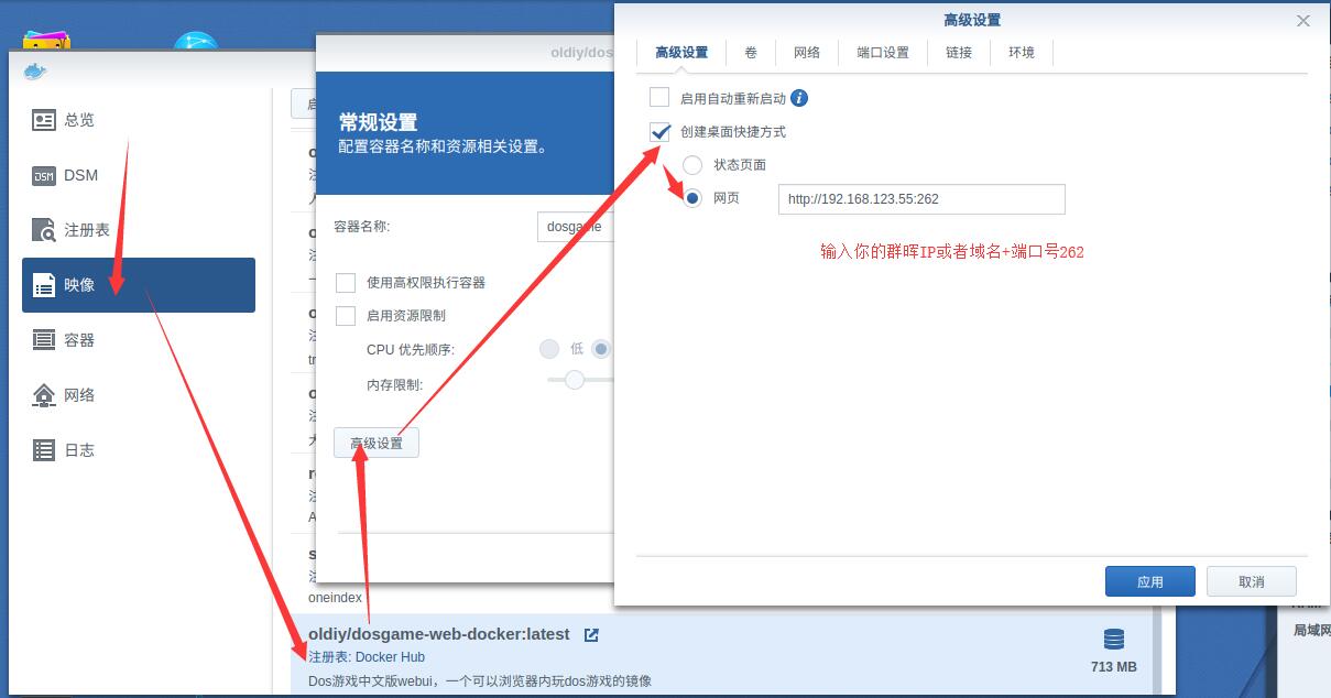 之后打开网页 http://<群晖IP or 域名>:262