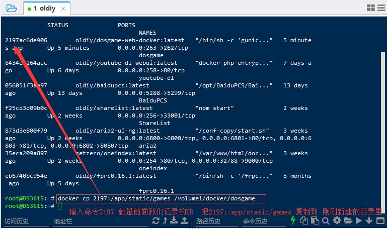 记住dosgame-web-docker的ID 前4位