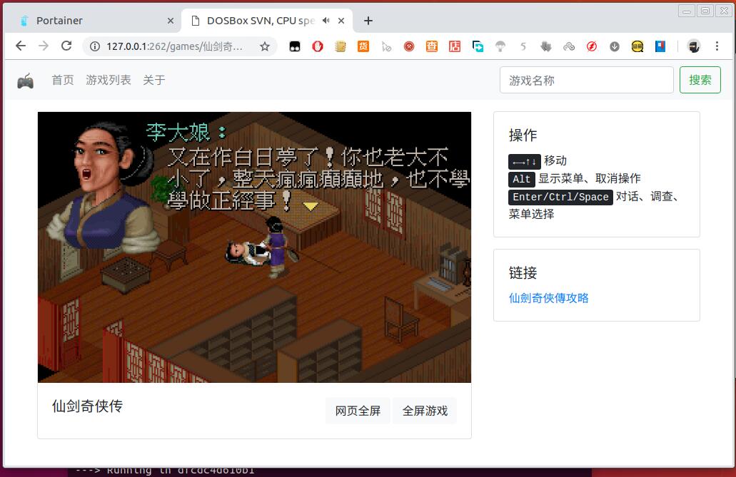 该项目可以在web页面运行dos游戏,后来没事做放到docker里面来跑,也成功了,只是源文件包含1900个左右的游戏,大小36G左右,由于太大做成docker不现实,所以fork出来精简了一部分,只保留了40多个经典的DOS游戏,现在已经上传到docker hub,喜欢怀旧的小伙伴可以去玩耍一下了!支持存档!