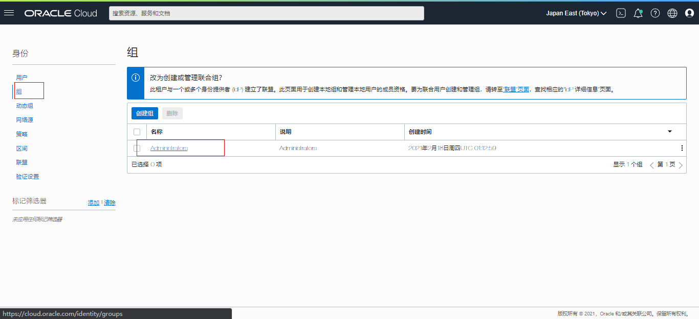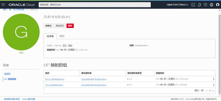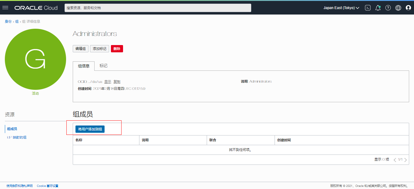2、选择 组 ,将你刚才添加的IAM用户,全部添加进组里。这里一共三个组都要添加:Administrators、以及Admin组里的 IdP 映射的组:IDCS_Administrators、OCI_Administrators。