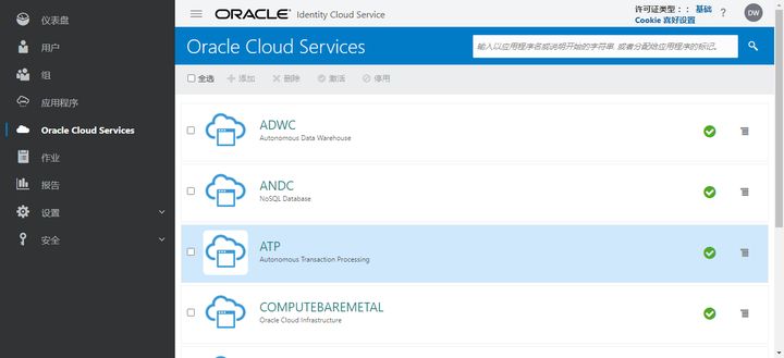 1、登录甲骨文,点击右上角人像图标,选择:服务控制台。进入后,选择:Oracle Identity Cloud Service 管理控制台
