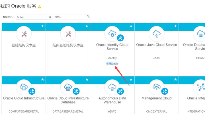 * 如果此处找不到的话,直接查看我的所有资源,在最下方,找到:OracleIdentityCloudService,进入后就能看到进入 管理控制台 的链接。