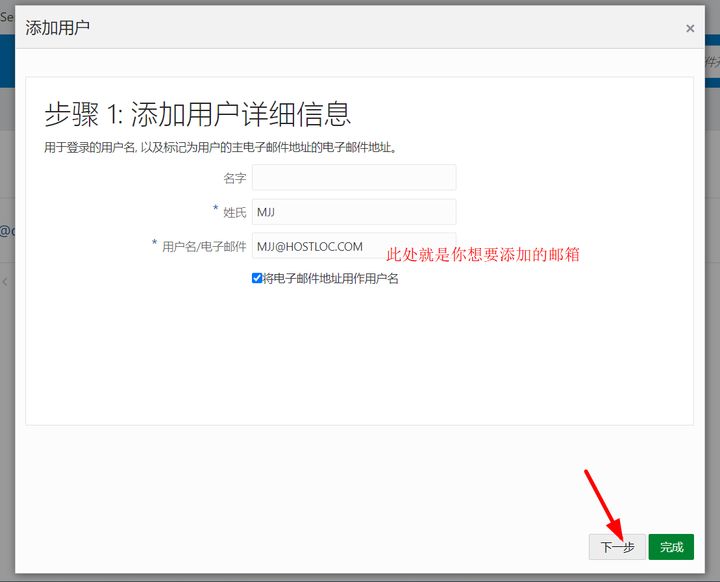 如果想使用自己的邮箱作为登陆账号,直接修改是无法办到的。这里我们就进行一个变相操作,添加一个用户,并使用自己的邮箱作为这个用户的登录名,然后将该用户提权至 Administrator 组。如此,即可使用自己的邮箱进行登录了,操作很简单。