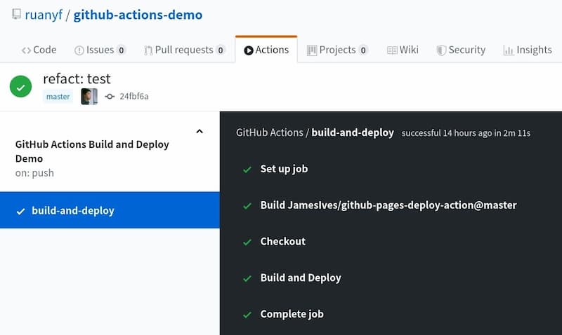 以后,每次修改后推送源码,GitHub Actions 都会自动运行,将构建产物发布到网页。