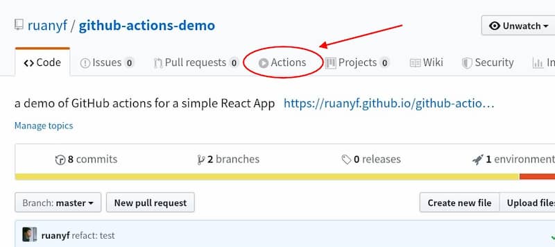 下面是一个实例,通过 GitHub Actions 构建一个 React 项目,并发布到 GitHub Pages。最终代码都在这个仓库里面,发布后的参考网址为ruanyf.github.io/github-actions-demo。
