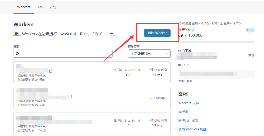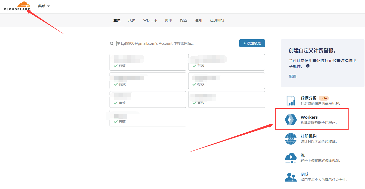 进入到cloudflare官方,登陆账号之后,先点击左上角的小云朵,进入后,找到右边的workers,点击进入