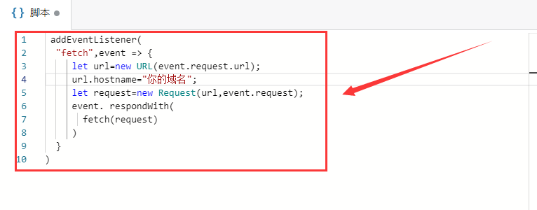 addEventListener( "fetch",event=>{ leturl=newURL(event.request.url); url.hostname="你的域名"; letrequest=newRequest(url,event.request); event.respondWith( fetch(request) ) } ) |