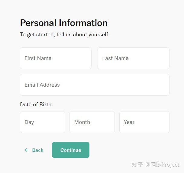 2.输入个人姓名、邮箱和出生日/月/年。