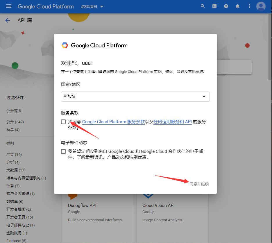 第一次进入这个界面会弹出如上图的欢迎界面,同意之后点击同意并继续。