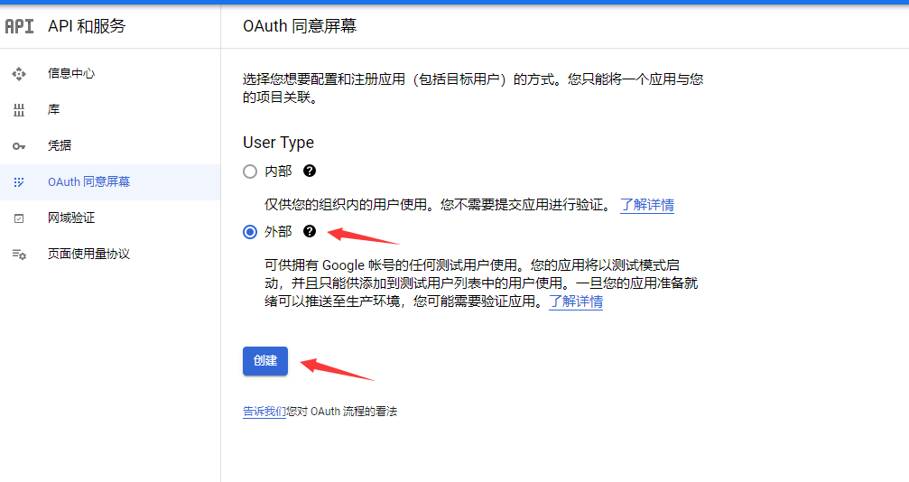 配置OAuth同意屏幕并创建客户端(按照图示一步一步来)