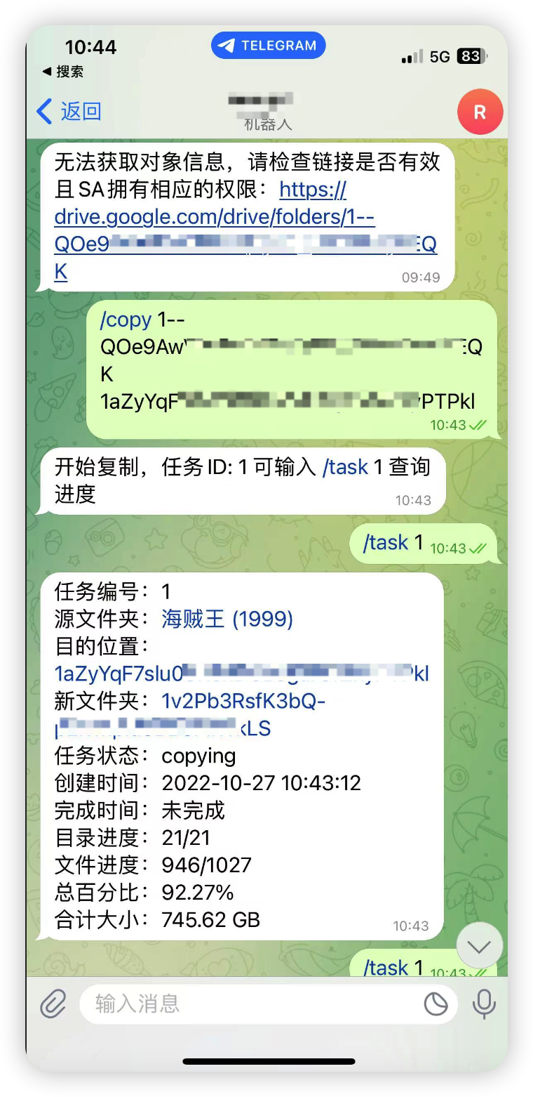 现在我的操作就是,在 tg 的 bot 上直接使用/copy aaa bbb ,它就在会后台去执行拷贝,完事了直接推送我成功。