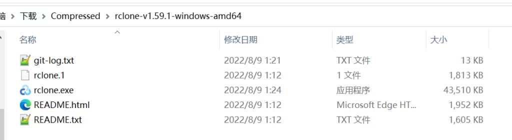 注意,接下来要在本地执行,前面下载在本地的rclone压缩包解压后,你应该能看到一个rclone.exe,类似下图