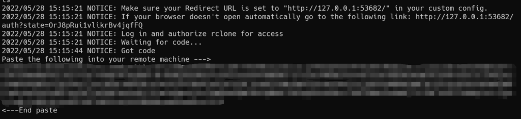 rclone authorize"drive""Your Token Code"Thenpastethe result.