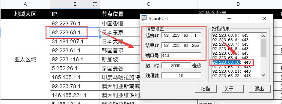找可用IP的话推荐一个小工具ScanPort,百度一搜就能找到。如图对这个C段以1开头255结束扫描443端口,因为节点位于国外扫不出来的话可以尝试超时时间稍微长一点。访问http://节点IP:443出现如下页面则表示该CDN节点工作正常,能够供给接入使用。