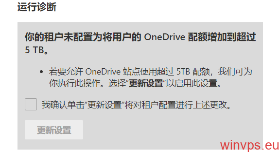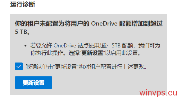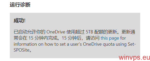 已启动允许你的 OneDrive 使用超过 5TB 配额的更新。更新通常会在 15 分钟内完成。15 分钟后,请访问 this page for information on how to set a user’s OneDrive quota using Set-SPOSite。