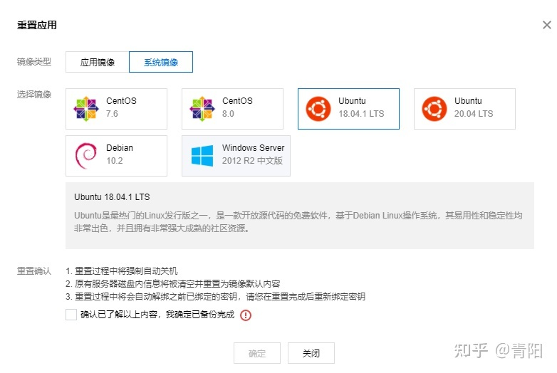 实例默认系统选择安装Ubuntu系统(新安装直接选择,或者重置应用)