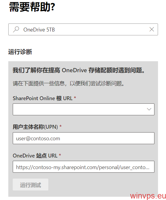在查找框中输入【OneDrive 5TB】回车确认,稍等,出现下图运行诊断