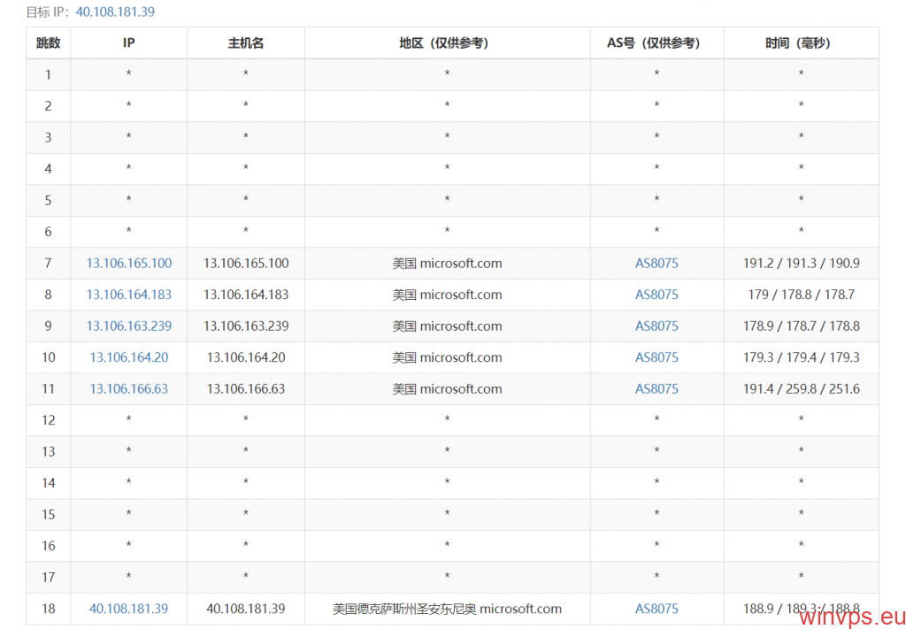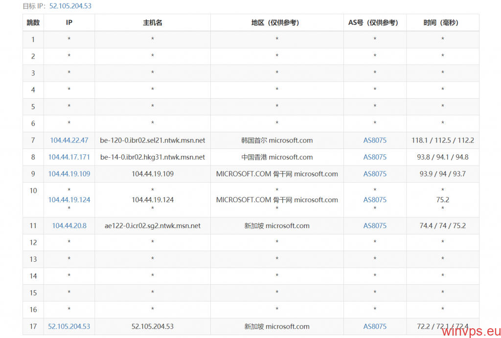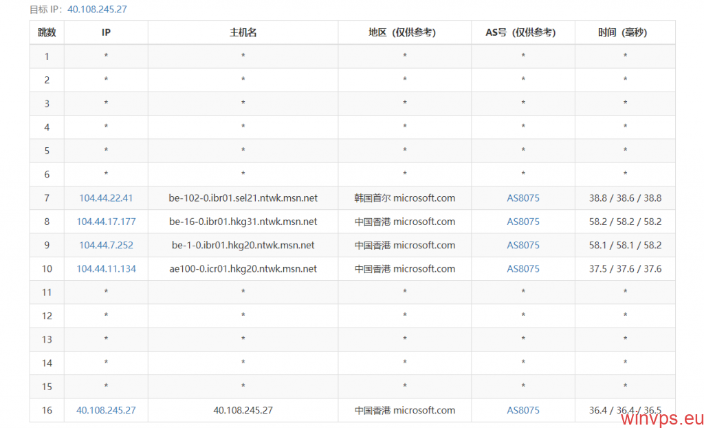 粘贴在输入框中,前面选择【azure】的测试地址来【查看】traceroute 【经过的路由地址】